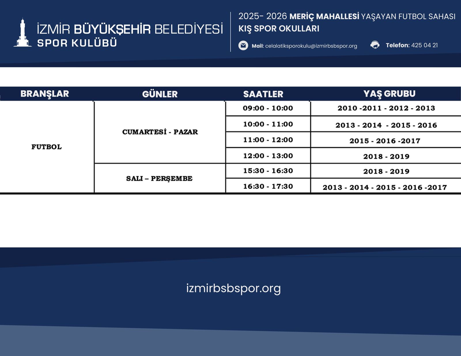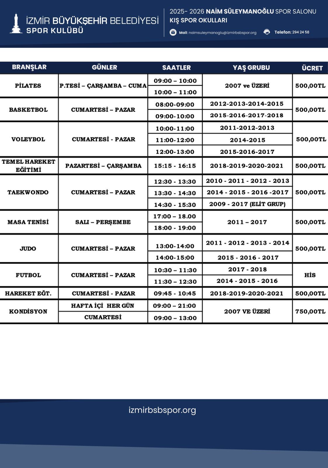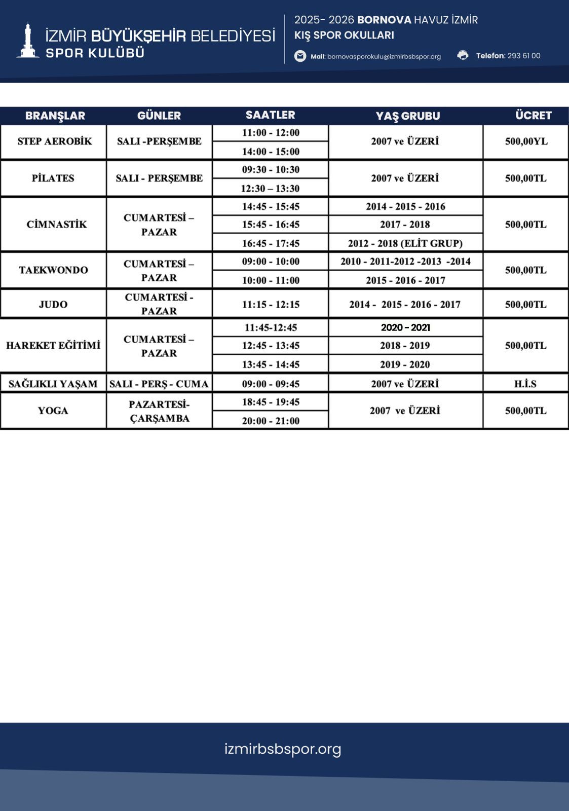 Bornova Havuz İzmir Kış Spor Okulu Programı için Tıklayınız...