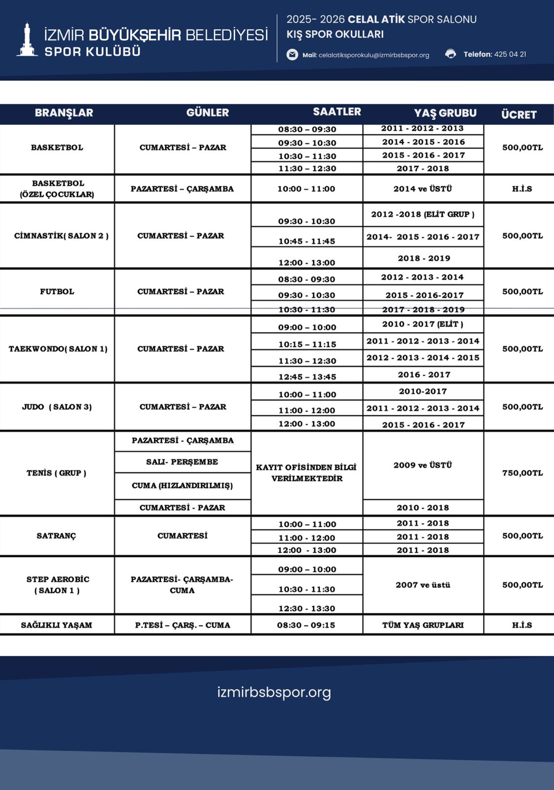 Celal Atik Spor Salonu Kış Spor Okulu Programı için Tıklayınız...