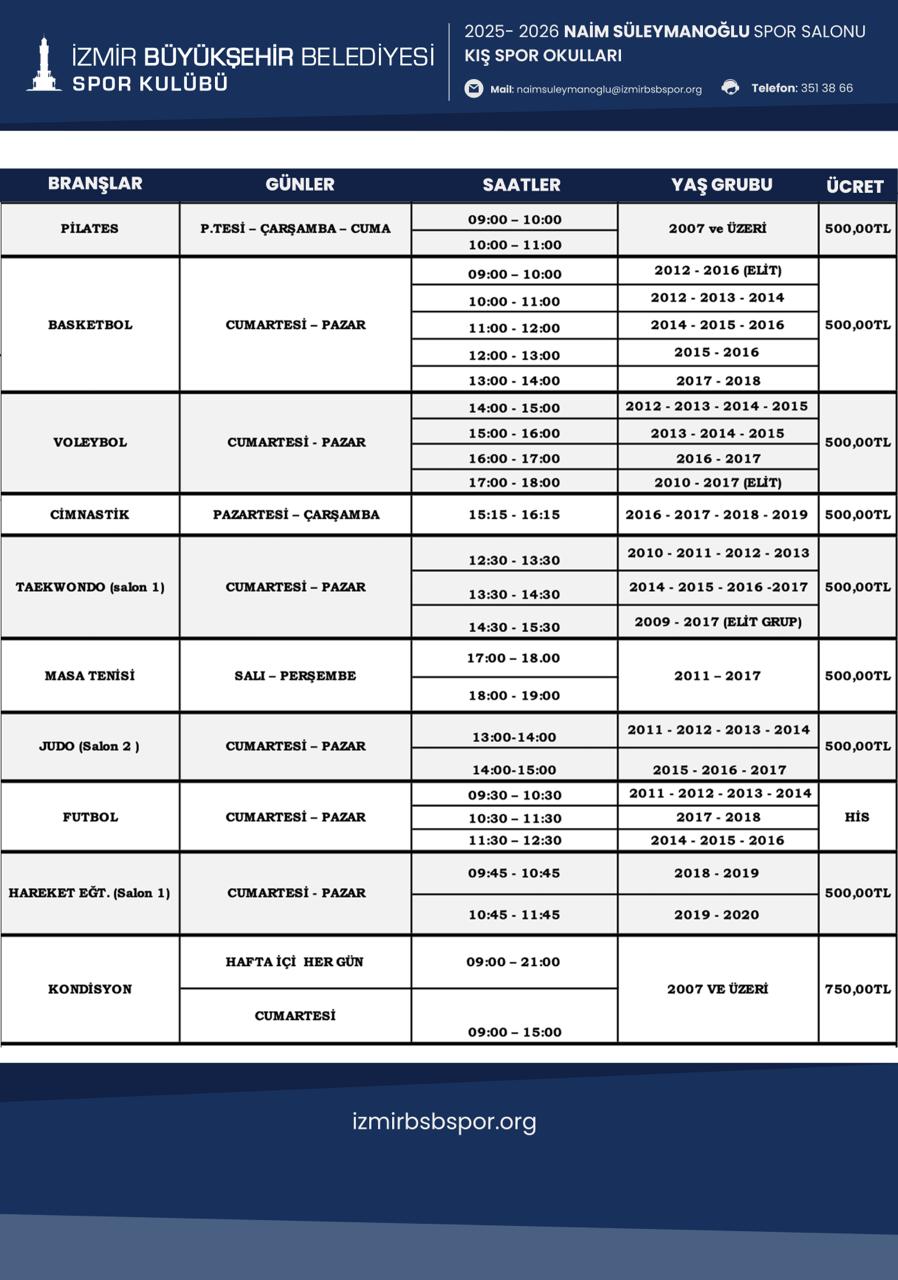 Naim Süleymanoğlu Spor Salonu Kış Spor Okulu Programı için Tıklayınız...