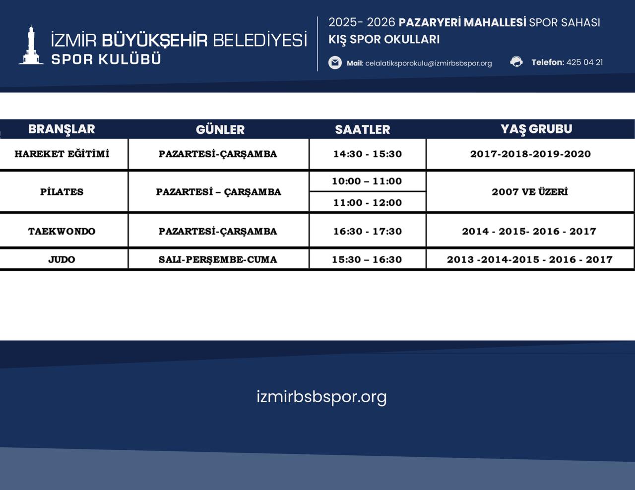 Pazaryeri Mahallesi Spor Merkezi Kış Spor Okulu Programı için Tıklayınız...
