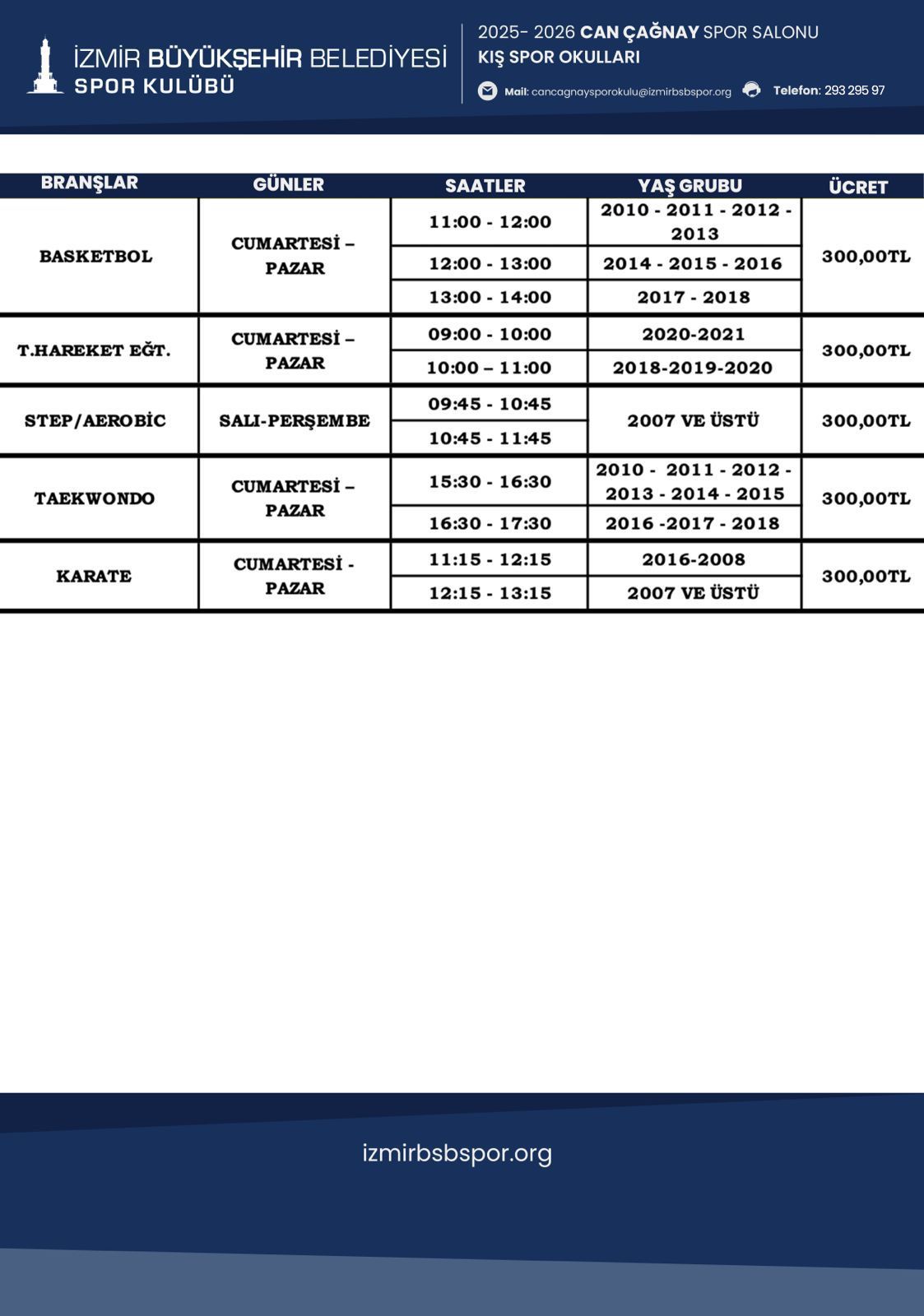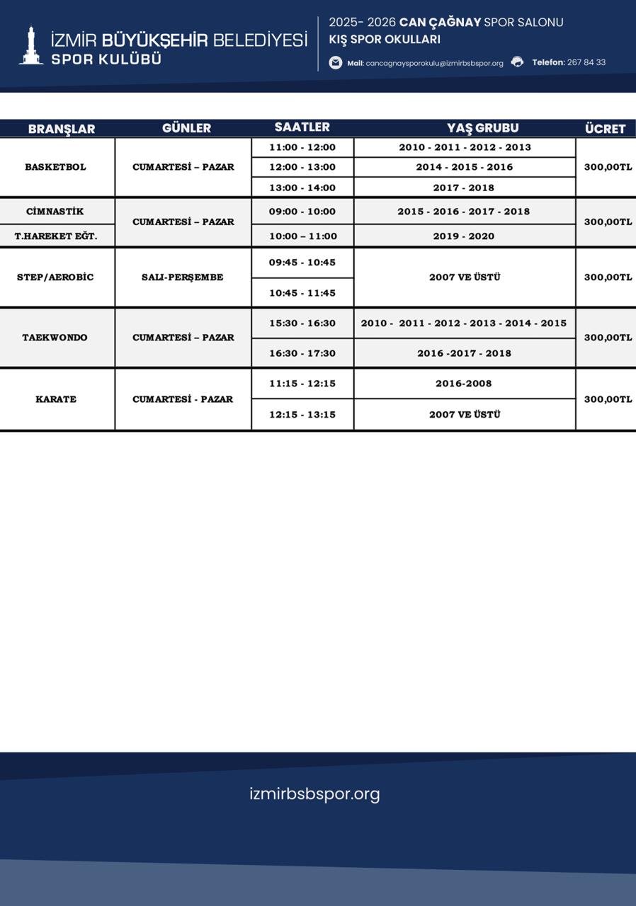 Can Çağnay Spor Salonu Kış Spor Okulu Programı için Tıklayınız...